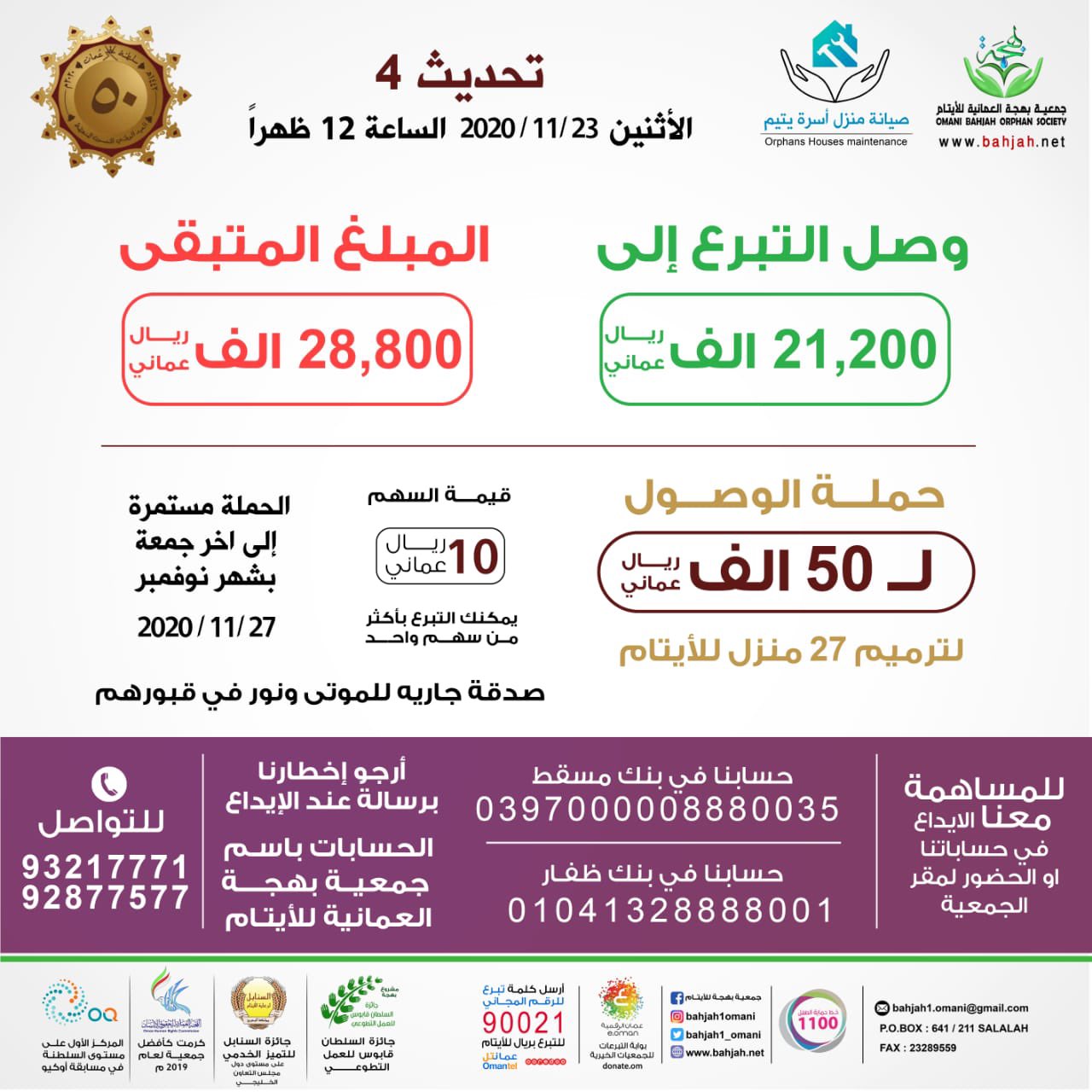 5 days Remainder and we will close the door to donate to the 50,000 riyals campaign to restore and maintain 27 orphan homes by oman156bahjah | Nov 23, 2020 | Uncategorized