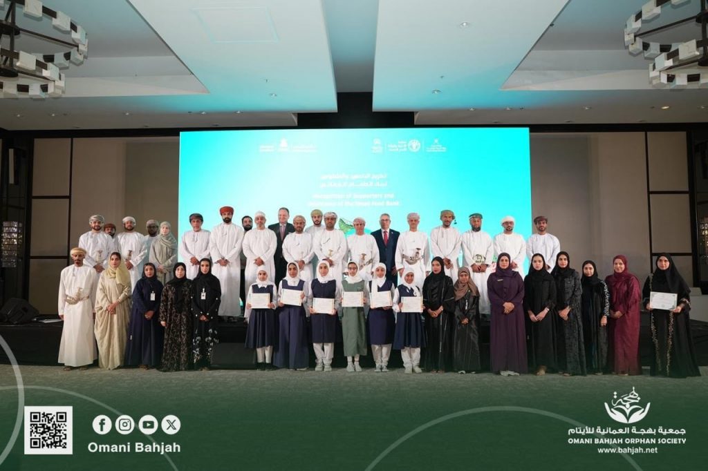 Bahja Orphan Society, in Muscat, was honored for its excellence in managing the Omani Food Bank project (Dhofar branch) and distributing more than 43 thousand meals.